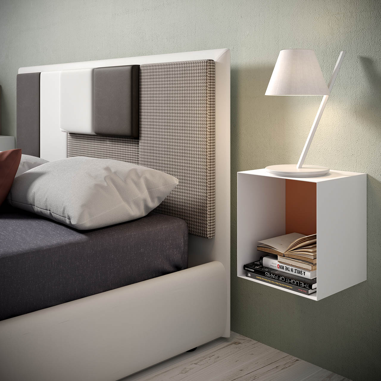 Camera da letto, camera matrimoniale, letto imbottito, comodini, vano porta libri, galm design